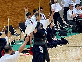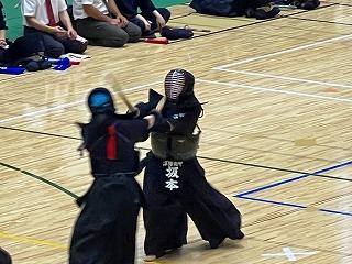 大将戦まで負けていたのですが、大将の杉本さんが胴で1本取り、勝ち数で並びました。2-2で本数差も同じなため、代表戦へ。代表の杉本さんは、積極的に攻めたのですが、最後は相手に1本取られて、惜しくも敗戦となりました。