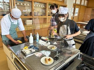 生徒たちは、でき上がったムニエルをおいしそうにいただきました。