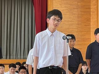 中嶋先生からは、学校生活について、当たり前のことを意識して、弱い自分に流されないように、強い気持ちで物事に向かう大切さについてのお話がありました。
