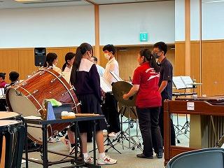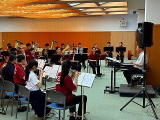 多くの中学校が集まり、ホールで練習したり、学院高校の生徒といっしょに演奏してアドバイスをもらったりしました。