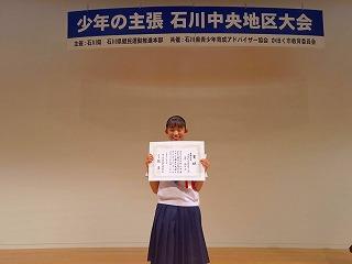 谷口さんは、9月1日に行われる「少年の主張石川県大会」への出場が決まりました。