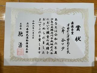 津幡南中Bチームが良い記録を出し、金賞を受賞しました。