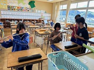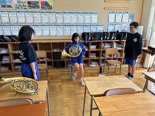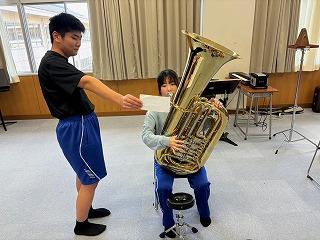 また、自分が担当した以外の楽器を体験してみよう、という企画もあり、3年生たちは新鮮な気持ちで楽器を演奏していました。吹奏楽の奥深さと面白さを改めて感じた時間だったのではないかと思います。