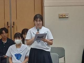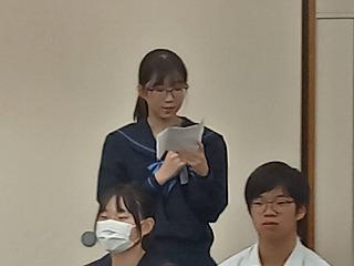 参加した生徒一人ずつから報告があり、それぞれの学校代表からも全体を通しての報告がありました。