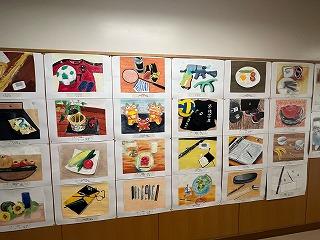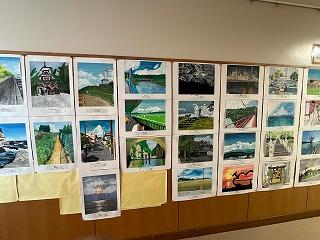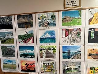体育館につながる廊下には、河北郡市の中学生1・2年生の描いた作品が展示されています。