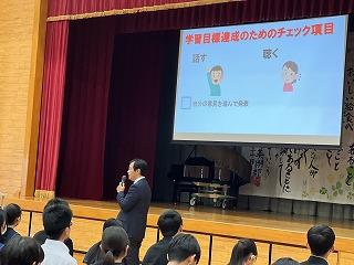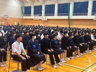 主体的に授業に参加することの大切さと、期末テストに向けてのお話でした。