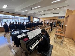 4限目に音楽室で練習をし、先生方を前にリハーサルをして、本番に臨みました。