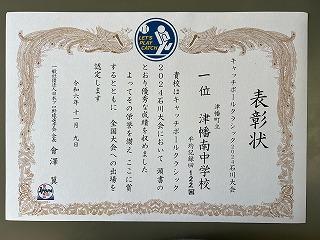 2位の長田中学校と、能登特別枠の能登香島中学校とともに、12月7日福島県あづま球場に行われる全国大会へ出場します。