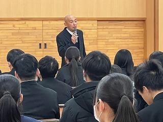 校長先生からの激励の言葉があり、それから進路指導担当の岡本先生から諸注意がありました。