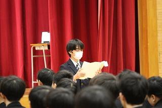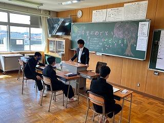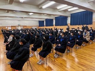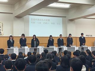 その後、全校生徒が体育館に集い、3年生を送る会が開かれました。
