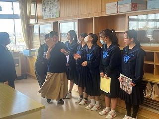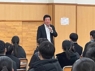 2年生は、総合的な学習の時間で高校調べを行っていますが、実際に高校生から話を聞くことで、さらに高校への興味関心が高まったようです。これからの進路学習に活かしてほしいと思います。