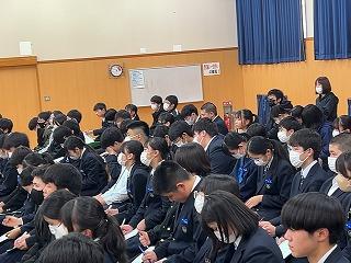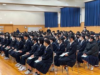 本日午前、明日の公立入試に向けての学年集会が開かれました。
