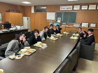 卒業生たちは、お礼として、校長室で久々の給食を食べました。協力してくれてありがとうございました!