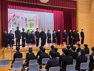 最後に1、2年生によるエールが送られ、それに応える形で3年生も在校生にエールを送りました。