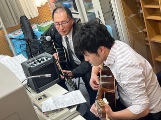 昼の給食時には、畑中先生、星野先生、田村先生、茶谷先生から、ギターの生演奏による歌のプレゼントが全校放送で流されました。