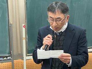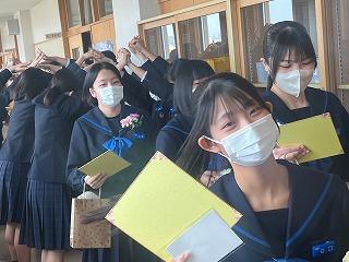 今までお世話になった先輩方に1、2年生の後輩たちが色紙や手紙などのプレゼントを渡し、お礼を述べました。