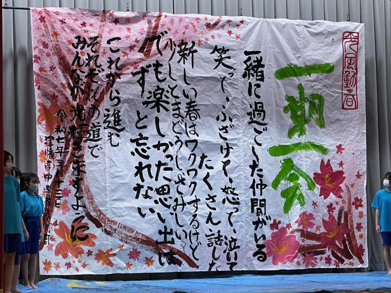 また、美術部からは3年生へのメッセージが込められた書道パフォーマンスが披露されました。