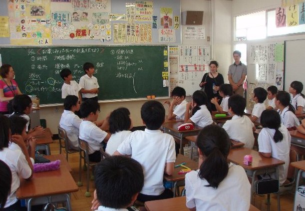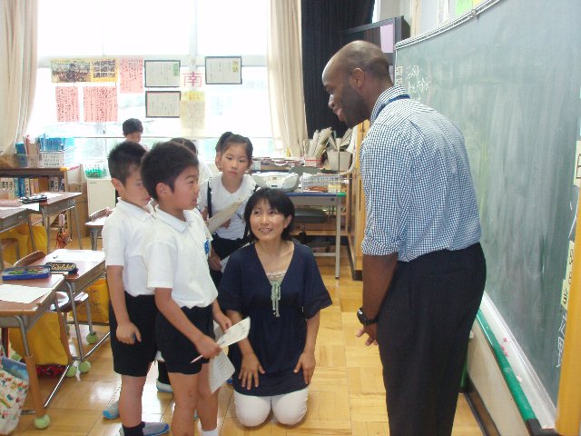 今週イギリスに戻り、オリンピックの放送関係の仕事をするそうです。ひょっとしたら6チャンネルのオリンピック番組に現れるかも。住まいはマンチェスターで、今話題の日本人サッカープレーヤー香川選手の所属チームマンチェスターユナイテッドがあるところだそうです。試合の観戦が今から楽しみだと言っていました。 5.6年生と久々の再会。