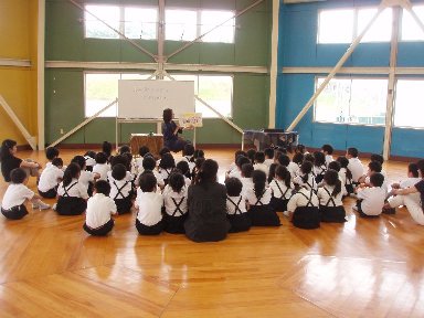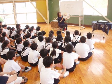 1年生と2年生がそれぞれ1時間を使ってゆったりお話の世界を楽しみました。