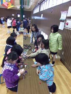 11月3日(水)2~3限 体育館で生活科の発表を行いました。 1年生を招いて、団栗や落ち葉などを使った ゲームや飾りの説明を行いました。 とてもよろこんでもらえたようです。 2年生もよくがんばりました。 |