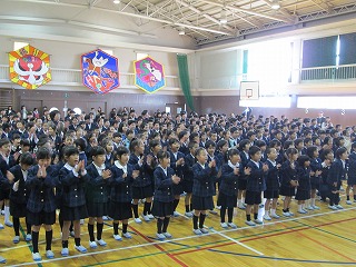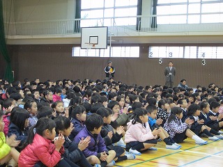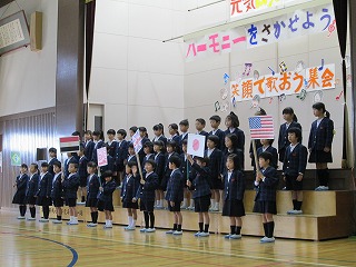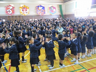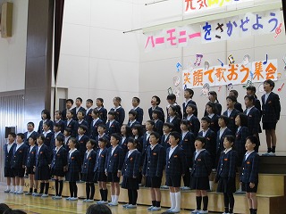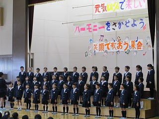 最初に全校児童で「太陽のサンバ」を元気よく合唱しました。