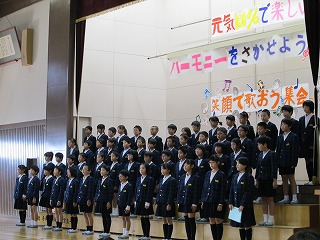 本日3~4限目に、本校体育館にて「笑顔で歌おう集会」が行われました。