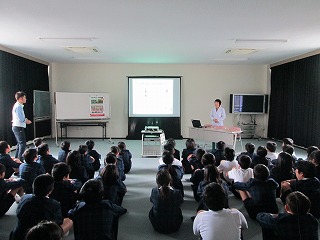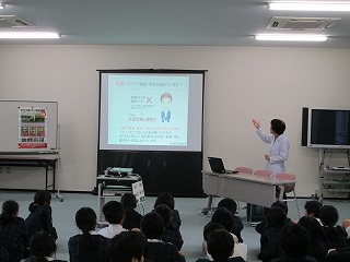 本校薬剤師の先生を講師としてお迎えし、お酒やたばこ、薬物が心と体に及ぼす影響について、