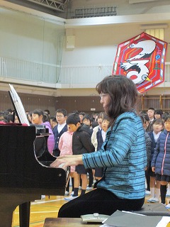 また、鶴ケ丘小学校の校歌も演奏してくださり、みんなで大きな声で歌いました。