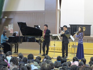 本日2限目に、本校体育館にて4名の奏者をお迎えしてスペシャルコンサートが開催されました。