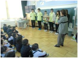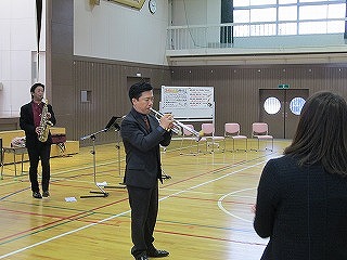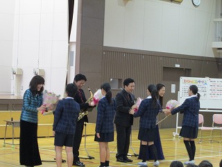 奏者のみなさんに、児童代表がお礼の言葉と花束を贈りました。