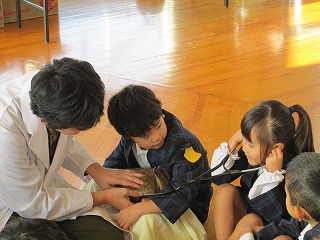 それから、心音器でうさぎの心臓の音を聞かせてもらったあとに、