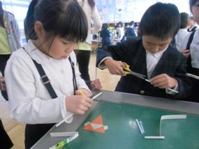 できあがった紙コプターがどうしたらうまく飛ぶか何度も工夫しながら、