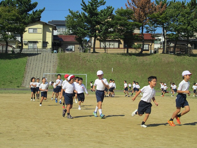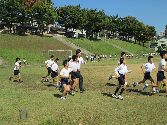 そして長休み時間には、1年生から6年生まで、先生と一緒になって走ります。