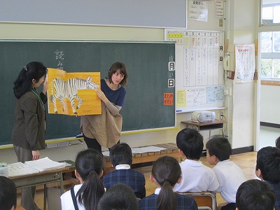 2年生はALTのパーカー先生、3年生は英語指導員の荒木先生、6年生は学校図書館司書の浅井先生が、
