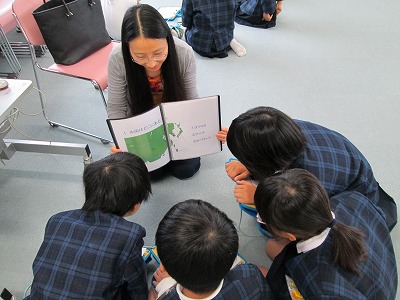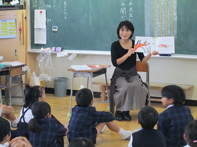 パーカー先生は、とっても楽しく読み聞かせをしてくださり、教室は笑顔でいっぱいになりました。
