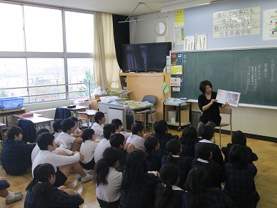 朝学習の時間を利用して、絵本の読み聞かせを行いました。