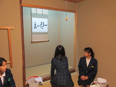 挨拶やお辞儀の仕方から始まり、普段とは違った所作で茶道の雰囲気を味わうことができました