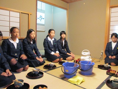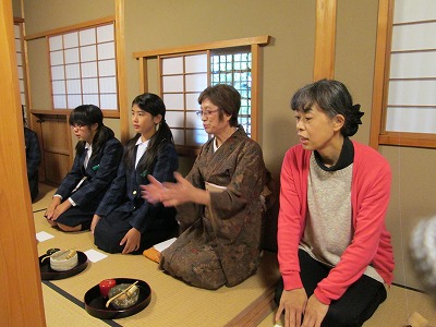 本日のクラブ活動で、日本伝統文化クラブの12名が、内灘町の茶室「自在庵」にて茶道体験をしました。