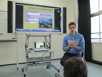 ブラジルのルカスさんは、ブラジルでの挨拶や小学校での生活の様子などについて興味深いお話をたくさんしてくれました。