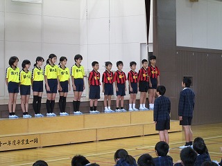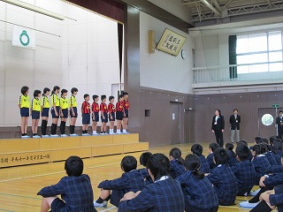 本日、本校体育館にて、「県いしかわっ子駅伝交流会」に出場する選手の壮行会が行われました。