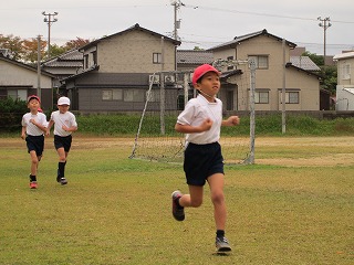1~2年生は校内グラウンドを、3~6年生は内灘町総合グラウンドにて、学年ごとに男女に分かれて思いっきり駆け抜けました。