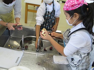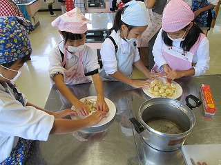 本日、3~4限目の生活科の時間に、2年生が家庭科室でスイートポテトを作りました。