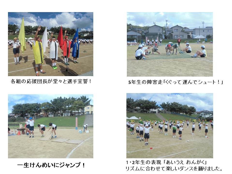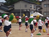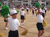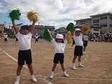 天候に恵まれ、小学校生活はじめての運動会が行われました。これまで練習してきた成果を存分に発揮し、ダンス・玉いれ・かけっこと大変よくがんばった1年生でした。特に、ダンスは、ポンポンを一生懸命ふって、とてもかわいく踊っていました。