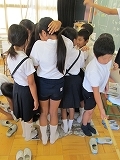 今年度、最後のプールに入りました。小学校のプールは保育園のプールと比べると、深くて広いので、6月のはじめは、こわがっていた子もいましたが、今はすっかり慣れて思いきり楽しんでいました。1年生の水に慣れるというめあては、みんな合格です!!