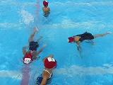 そんな練習の合間に、1・2年生合同でプールに入りました。