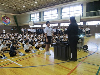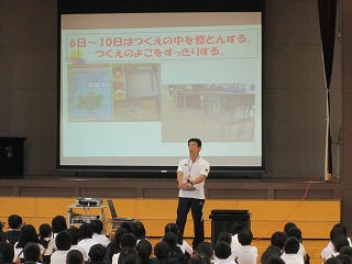 最後に、生活指導担当の先生から今月の生活目標についてのお話がありました。