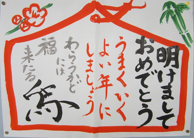 あけましておめでとうございます。始業式では、元気な子どもたちの顔を見ることができ、職員一同嬉しく思います。さて、今年は午年です。職員室前には絵馬をイメージしたイラストを掲示しました。「うまくいくよい年にしましょう」子どもたち、そしてご家族の皆様方にとっても何事もうまくいくよい一年になりますように。本年もどうぞよろしくお願いします。