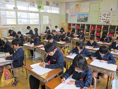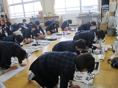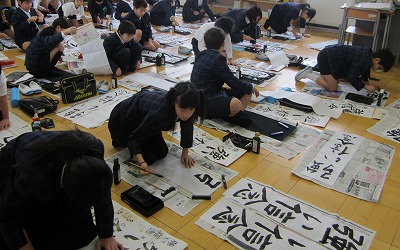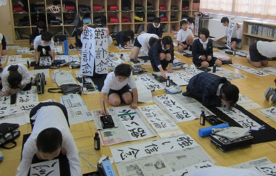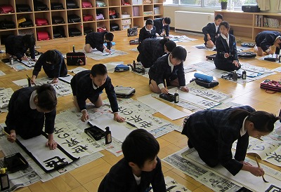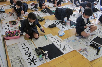 全校一斉に書き初めをしました。