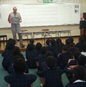 津幡警察署の南さんに来ていただいて、防犯教室を行いました。