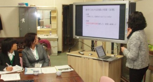 三角形や四角形を色を変えて自由にすきまなく並べる授業です。できあがった模様がとてもきれいでした。